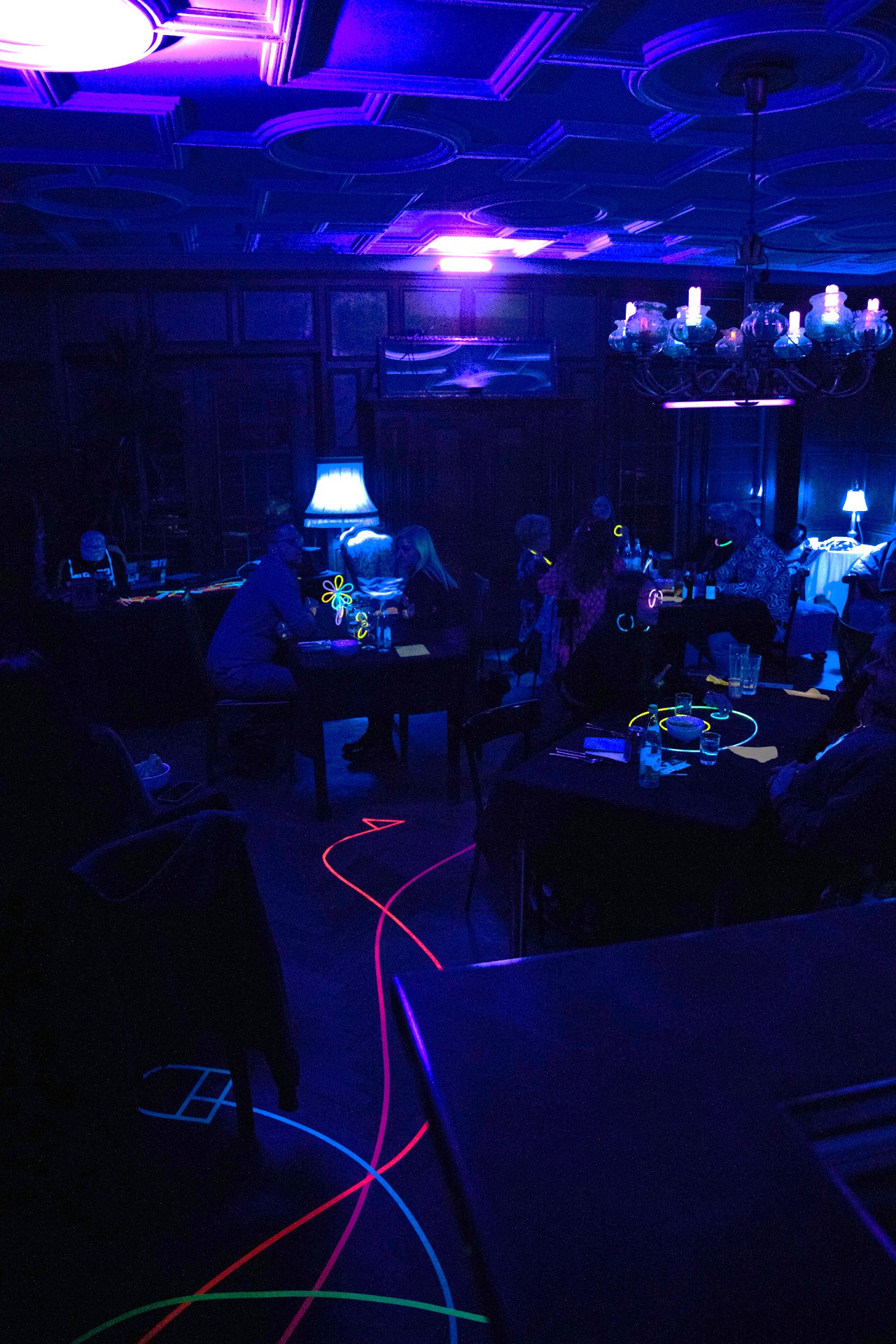 dessen Gerichte im Schwarzlicht erstrahlen –